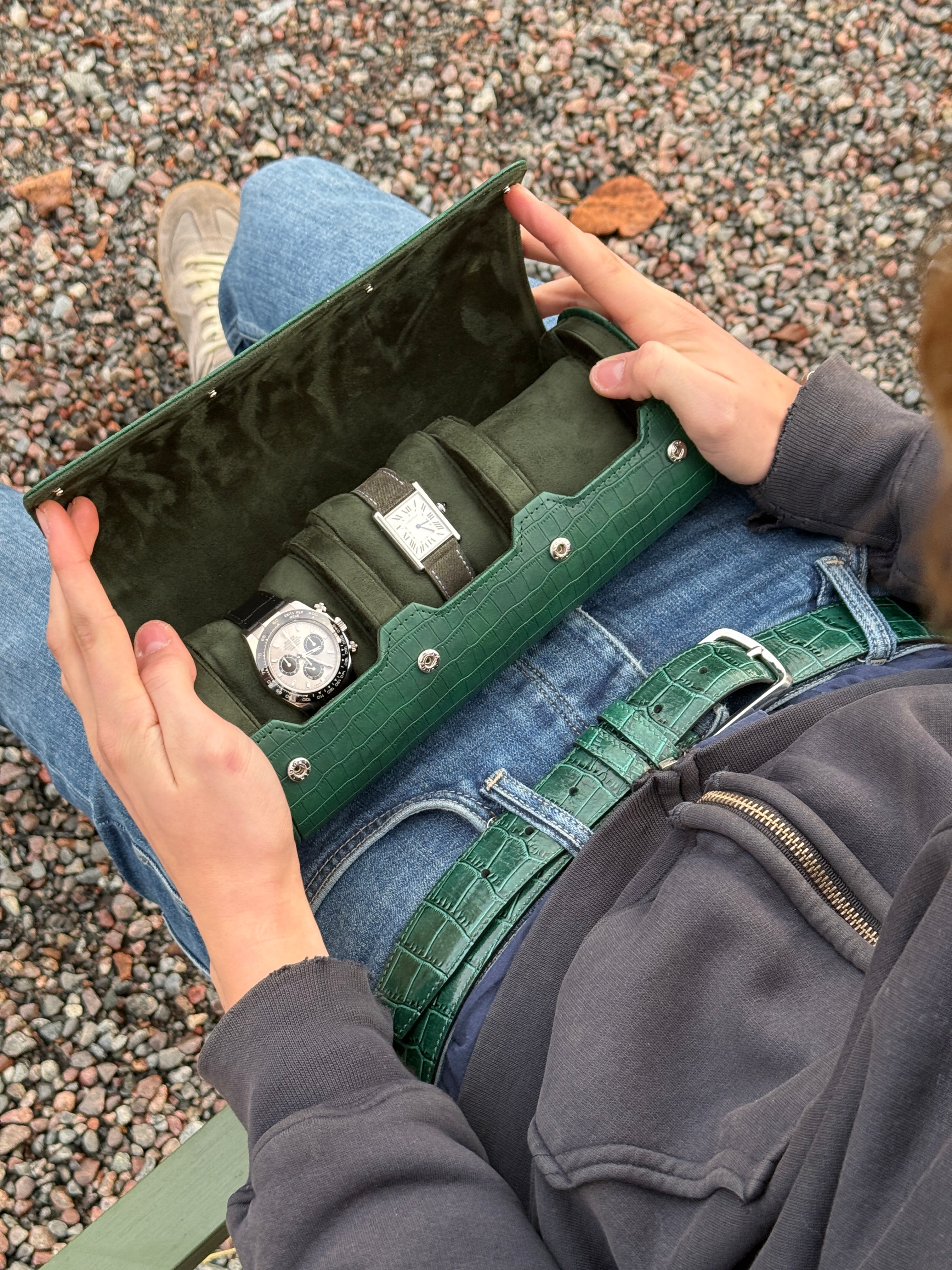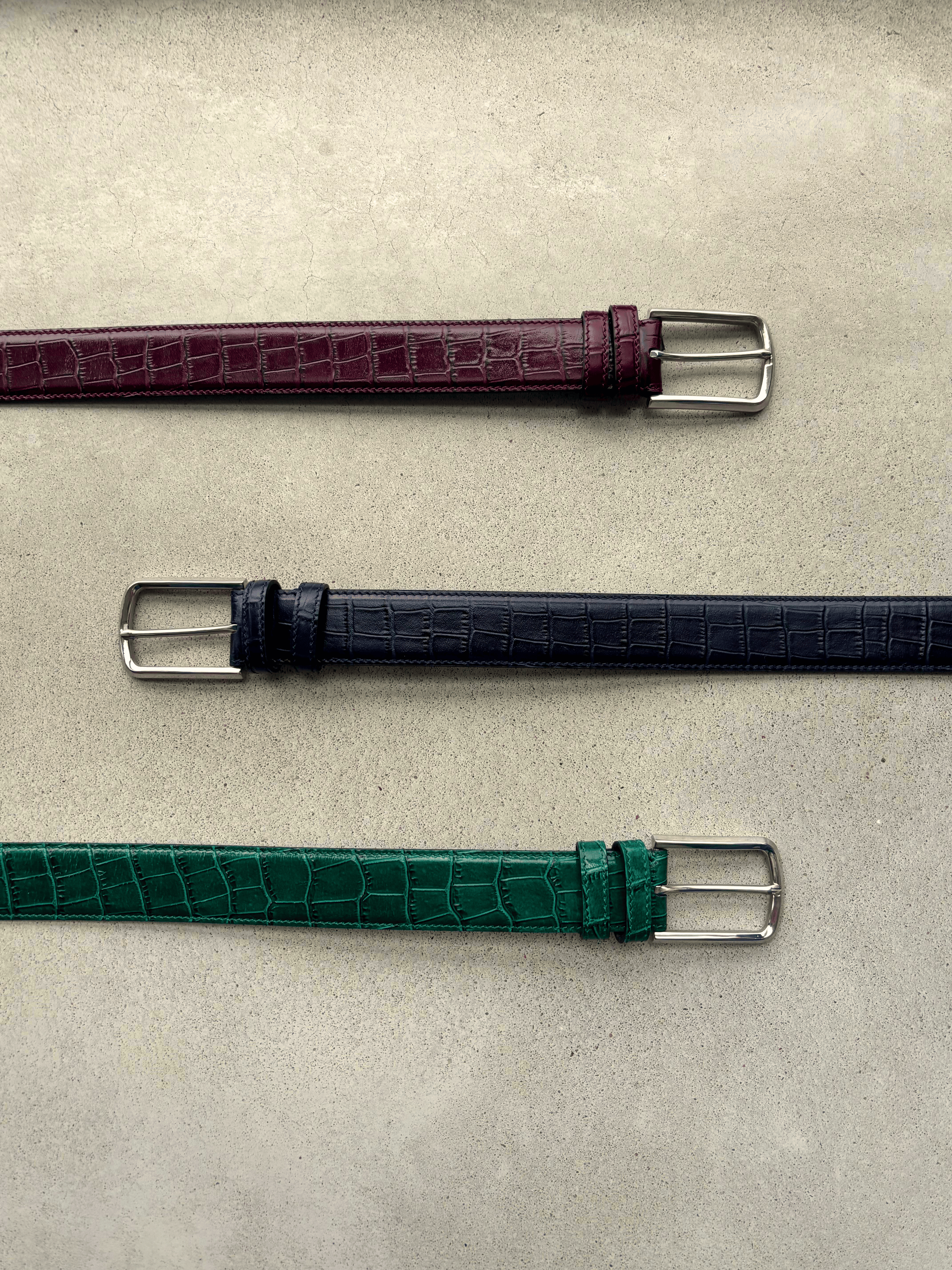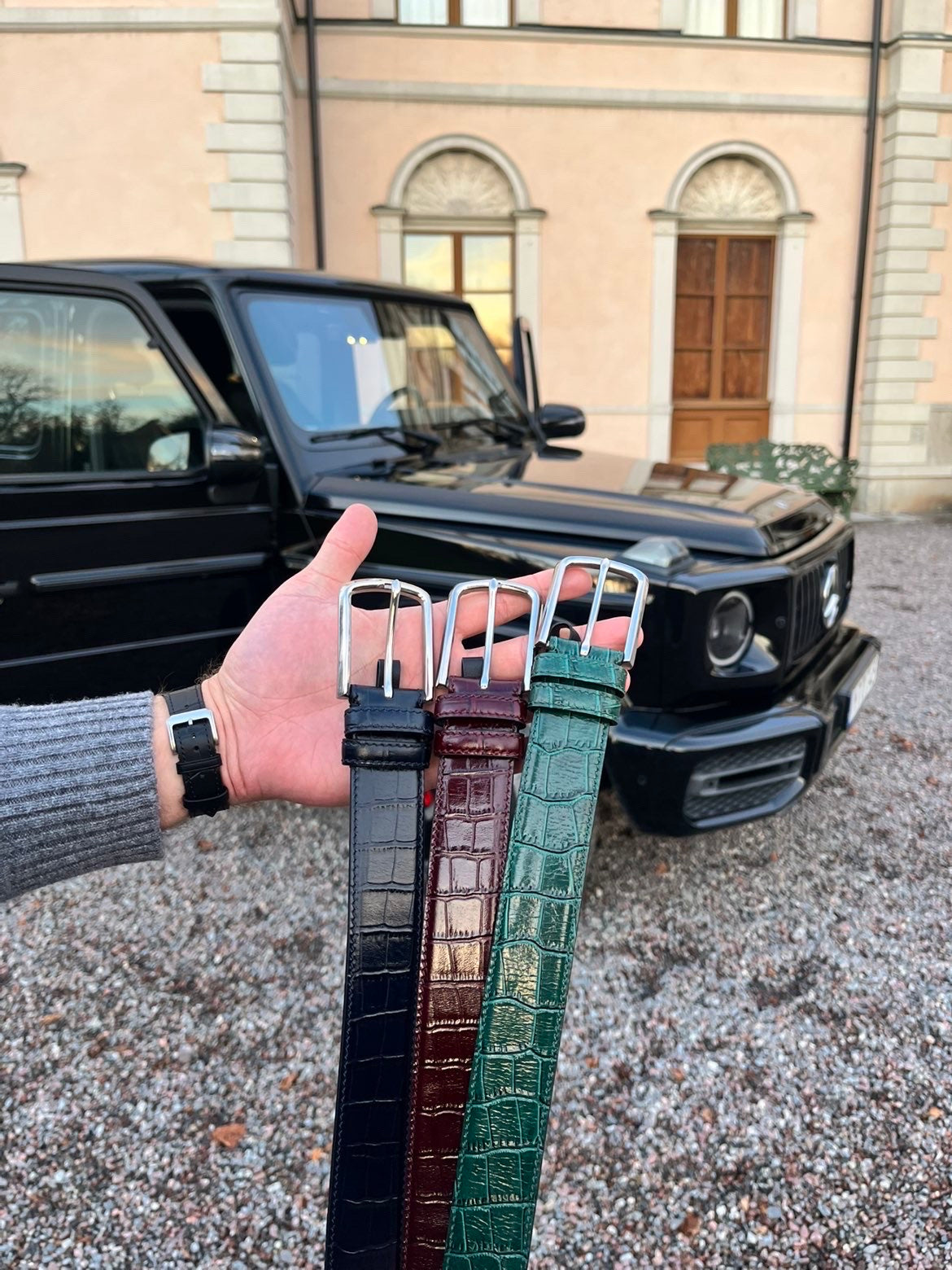 Exklusiva bälten i präglat kalvläder med ett elegant alligatormönster. För dig som vill ha lyx utan lyxpris.